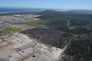 Due to the national conservation significance of the vegetation within the Sandown Development Area, a substantial portion of land has been designated for conservation of the critically endangered Cape Flats Sand fynbos. This land will be incorporated into the Sandown Fynbos Corridor Conservation Area, an initiative that aims to connect the Blaauwberg Nature Reserve with the Diep River section of the Table Bay Nature Reserve (TBNR) This region was characterised by isolated remnants of Cape Flats Sand Fynbos (FFd5) amidst dense stands of Acacia saligna (Port Jackson) and Myrsine africana (Myrtle). Clearing these areas was a labour-intensive effort to preserve the valuable undergrowth, as threatened and near-threatened species were discovered during botanical assessments. It was hoped that the soil’s seed bank still contained viable seeds that could be stimulated by the removal of alien biomass and a controlled burn. Alien vegetation was systematically removed, and the biomass was spread out to prevent hot spots during the planned burn-which was postponed by two years. With 15 498 locally sourced and curated plants planted on-site throughout the project’s duration, the Sandown Fynbos Corridor has achieved stability and ecological functionality, shining as a gem within the urban landscape. The principles applied in the restoration of the Fynbos Corridor is a novel combination of a broad range of intellectual capital, from several fields. It represents the culmination of the most current scientific research in the field of restoration ecology, best horticultural practices, refined assessment and planning skills that delivered the restoration plan as well as good project management skills.